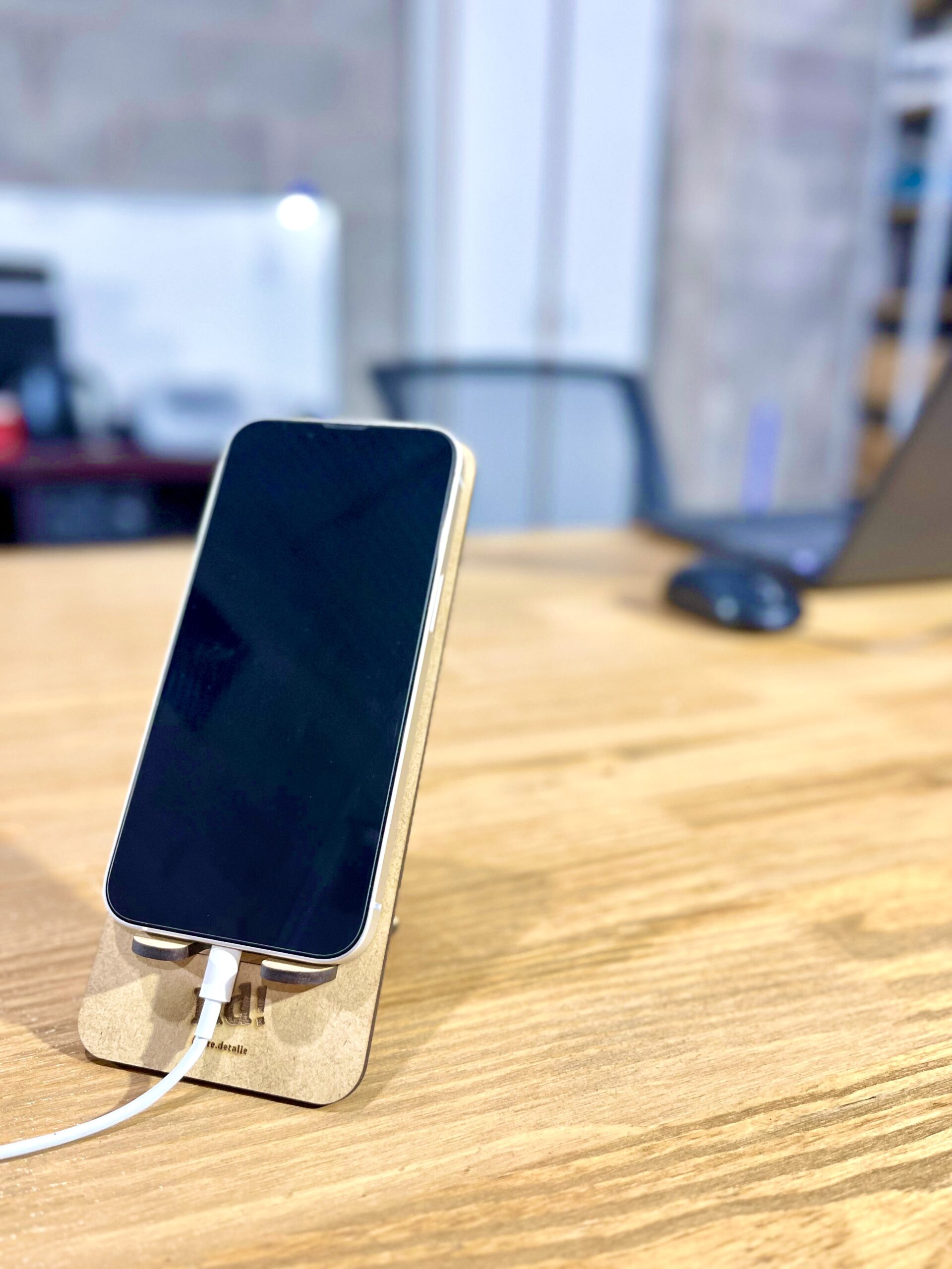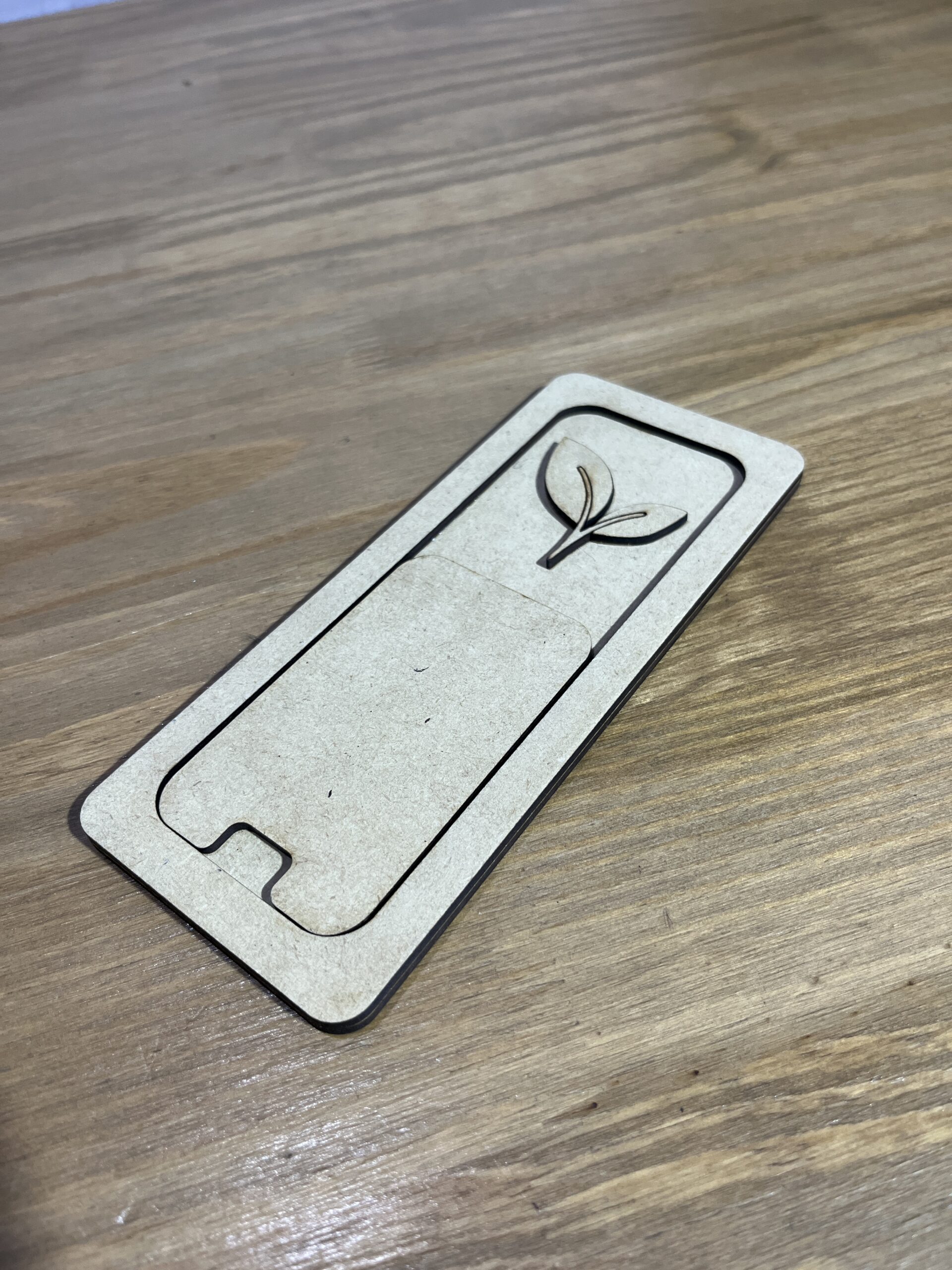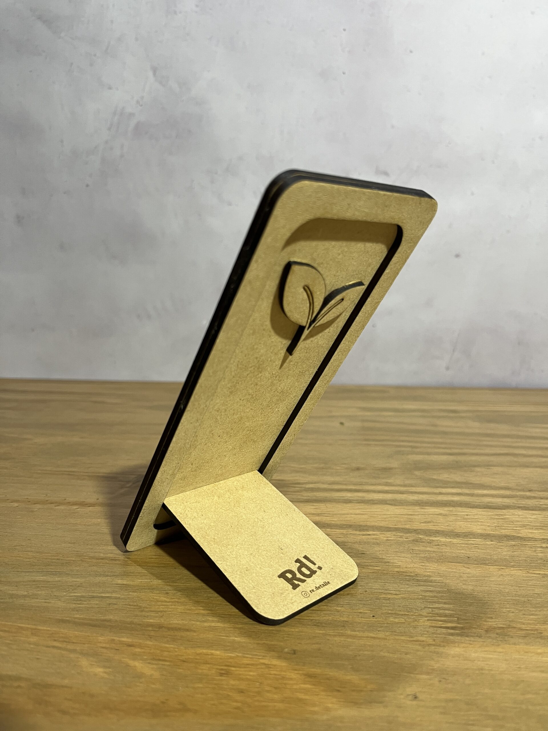 Portacelular de MDF natural 3 mm, con diseño simple y elegante. Ideal para mantener el teléfono siempre visible y ordenado sobre el escritorio. Liviano, resistente y funcional, perfecto para un estilo minimalista o como detalle decorativo. 📱